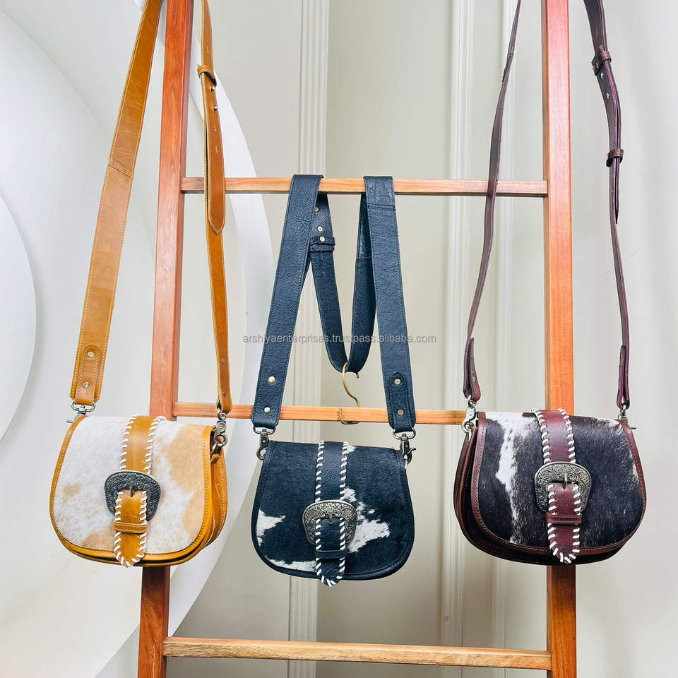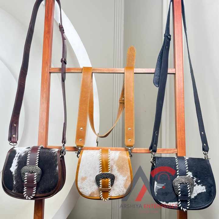 Cowhide Leather Crossbody Bag with Buckle