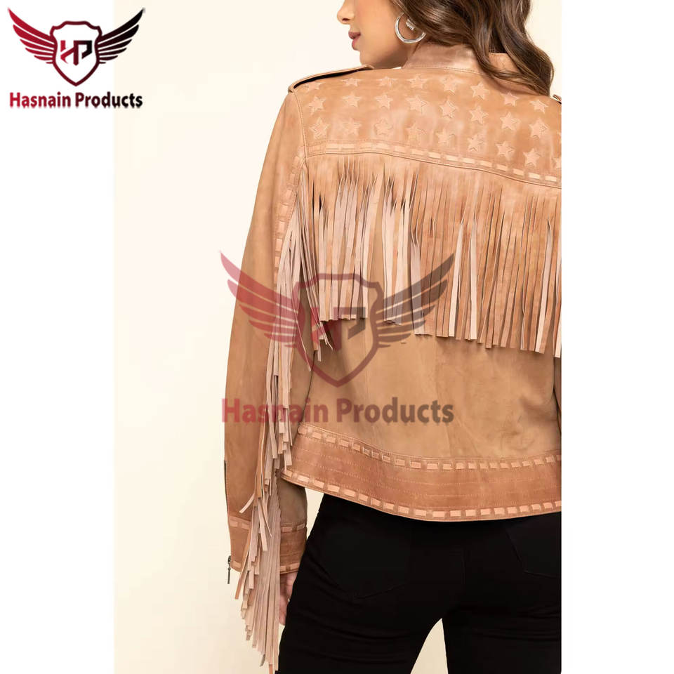 Hot Selling Women's Western Leather Jackets High Quality Fine Cowhide Fringed Beaded Printed Fabric Pocket All Colors Available