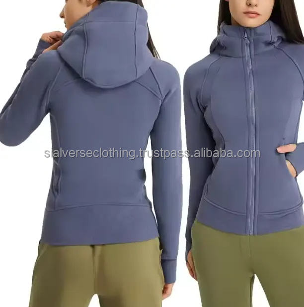 Hot Selling Women's Winter Sports Running Hoodies Quality Acid Washed Trending Hooded Collar Design 3D Embroidery Zipper