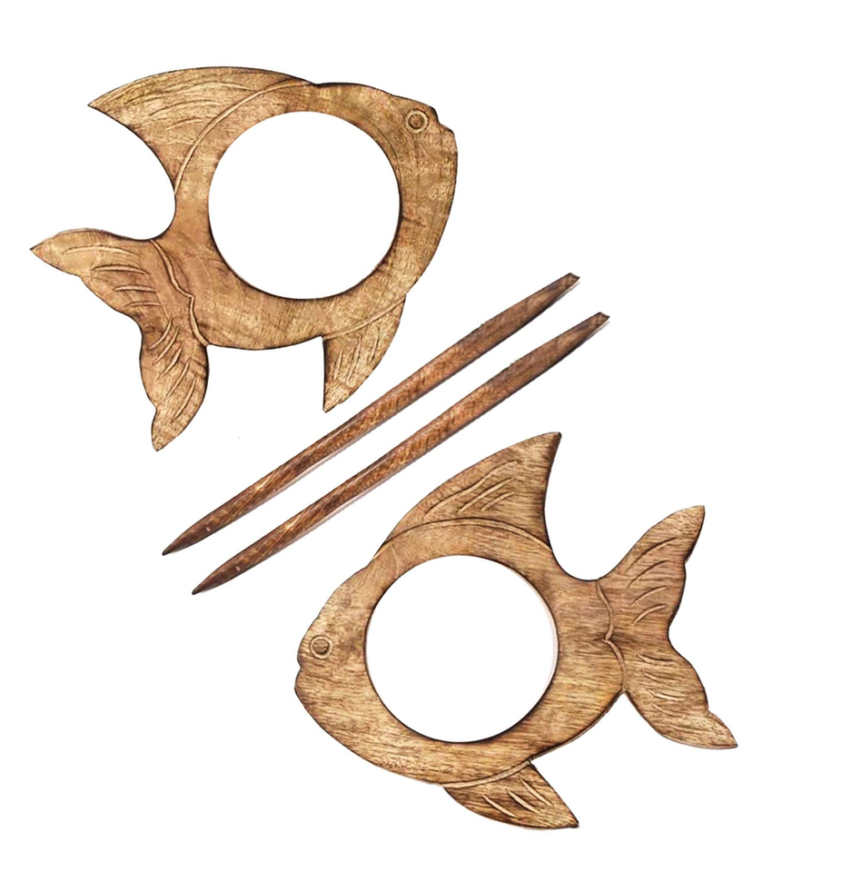 Hot Selling Wood Curtain Tie Back Acacia Wood With White Fish Design Handmade Wood Curtain Tieback Ring for Sale
