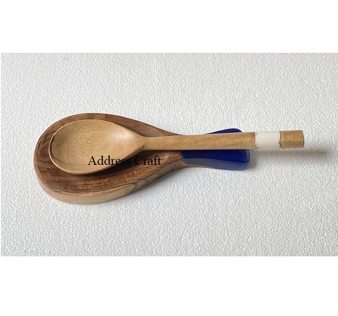 Hot Selling Wood and Resin Spoon Rest Acacia Wood Resin Spoon Holder Kitchenware Spoon Holder Kitchen Utensils Kitchen Tools