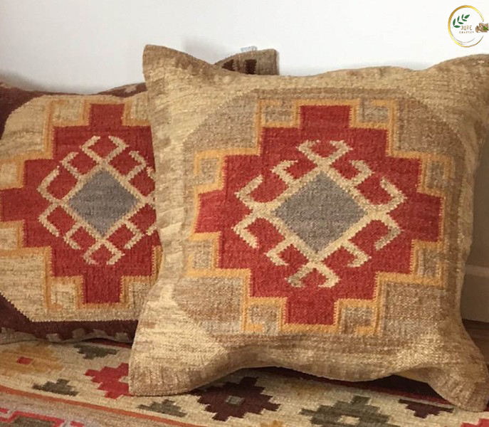 Hot Selling Wool Jute Kilim Cushion Covers Woven Sofa Carpet and Pillows Christmas Decor Factory Price