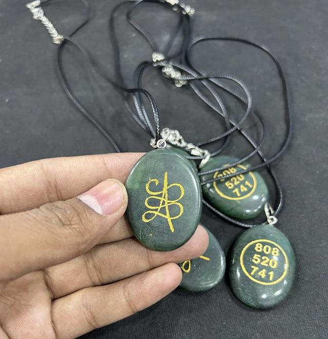 Premium Quality On Soha Agate Natural Green Jade Crystal Zibu Coin Pendant For Wealth & Good Luck On Sale