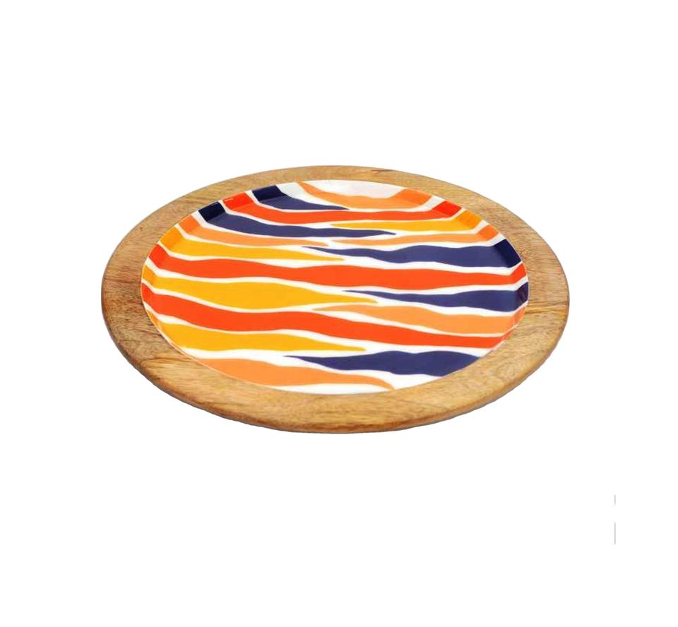 Hot Selling round Floral Print Wooden Serving Platter Handmade Enamels Wood Charger Top 36 Dinner Plates Directly India Home Use