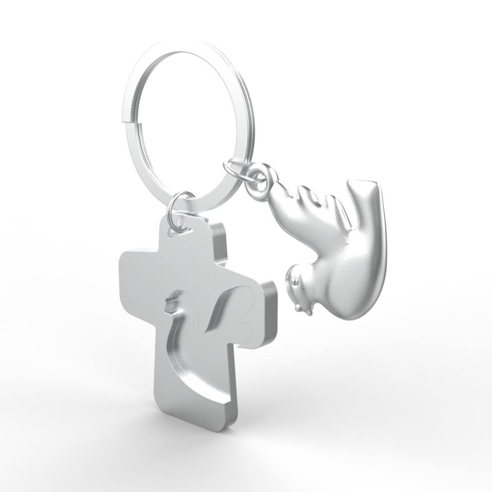 Hot Stylish Cheap Zinc Alloy Cross Dove Keychain Ringfor Souvenir
