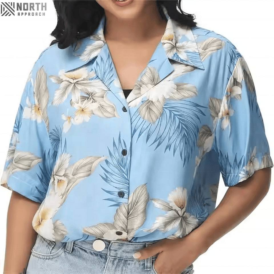 Hot Summer Shirts Button Down V Neck Short Sleeve Blouses Ladies Tops Floral Printed Shirts For Women Vacation Shirts