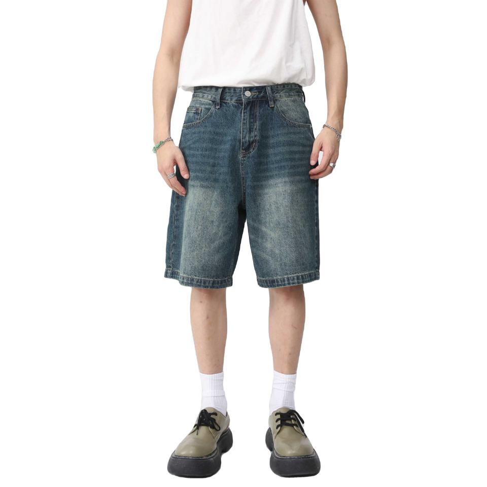 Hot Summer Streetwear Men's Loose Denim Jorts Comfortable Relaxed Fit Elastic Waist Closure 100% Cotton OEM Pocket Front High
