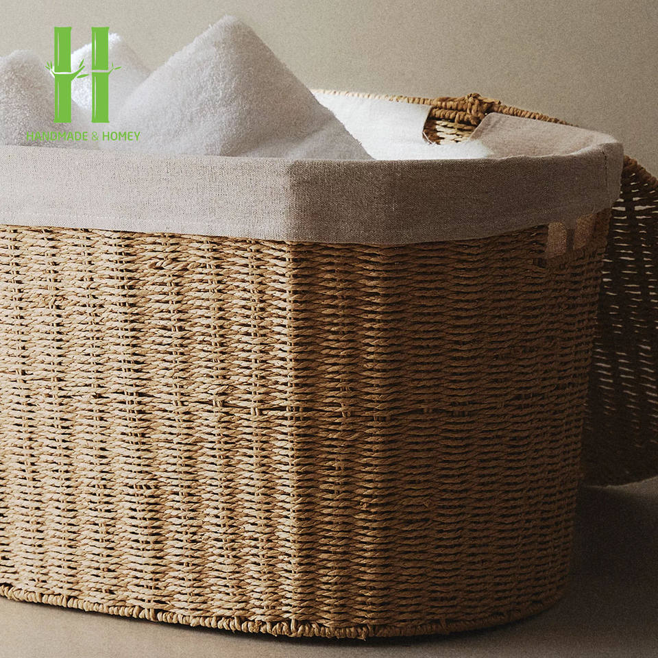 Hot Trend Design Seagrass Storage Basket Home Decorative Christmas Decorations Gifts Foldable Laundry Basket Storage Box Bin OEM
