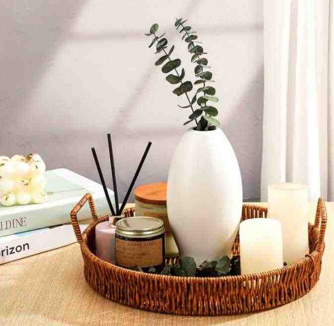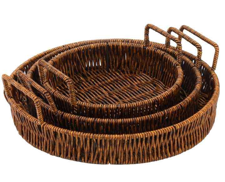 Hot Trend Elegant Dining Kitchen Serving Tray Carrying Handles Handwoven Rattan Hot Trend Shape Decorative Eco-Friendly Made