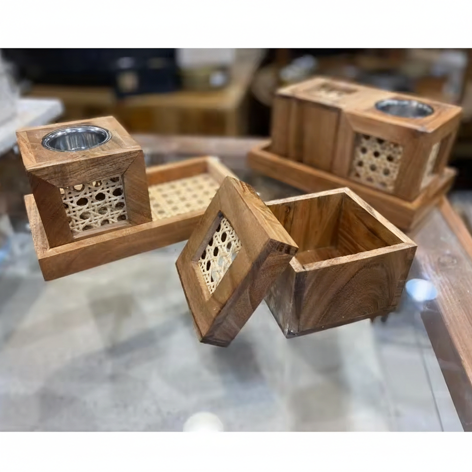 Hot Trend High Quality Unique Wood & Rattan Bukhoor burner Incense Mubkhar Box and Tray For Ramadan Eid Festive Stylish Mubkhar