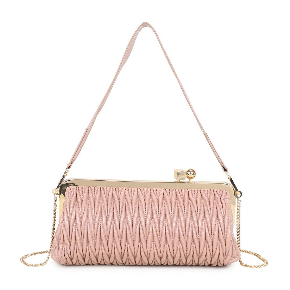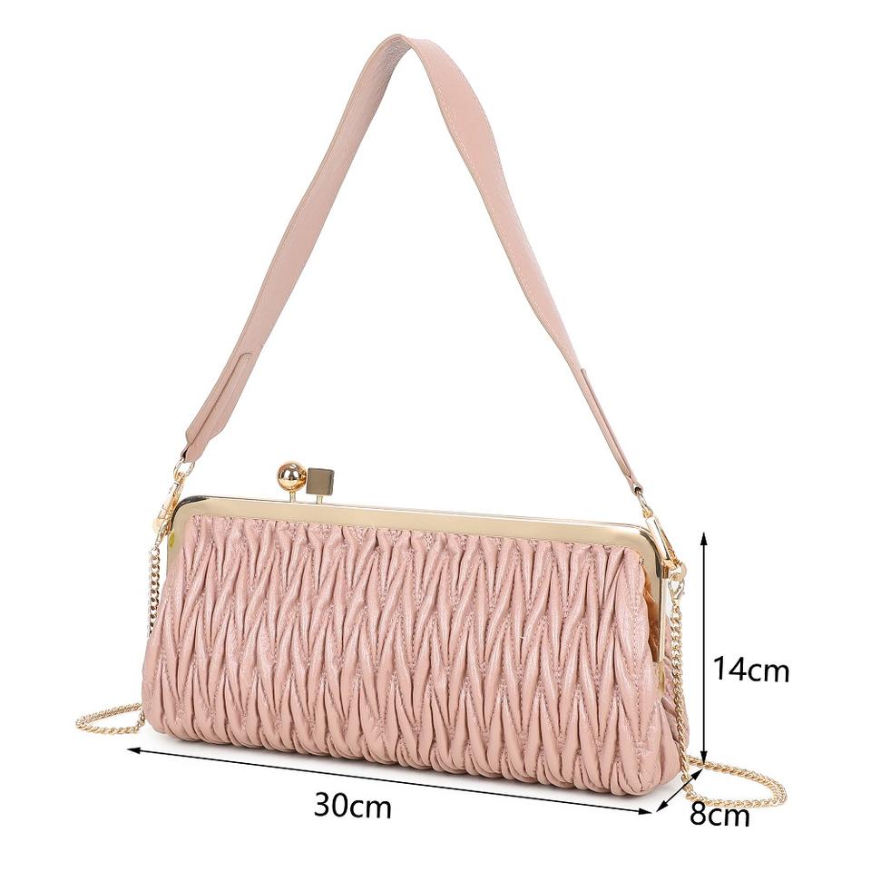 Hot Trend Soft Pink Ruched Clutch Bag Women Gold Metal Frame Detachable Chain Strap Elegant Evening Shoulder Purse