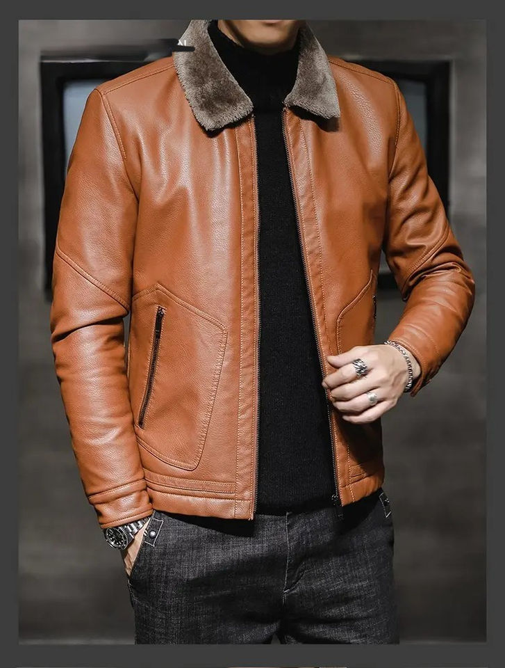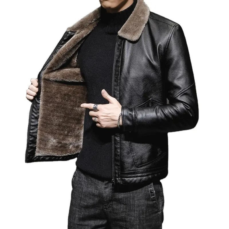 Hot Trending Design Premium Leather Jacket Inner Rabbit Fur Warm Leather Thick Windproof Beautiful Leather jacket for men