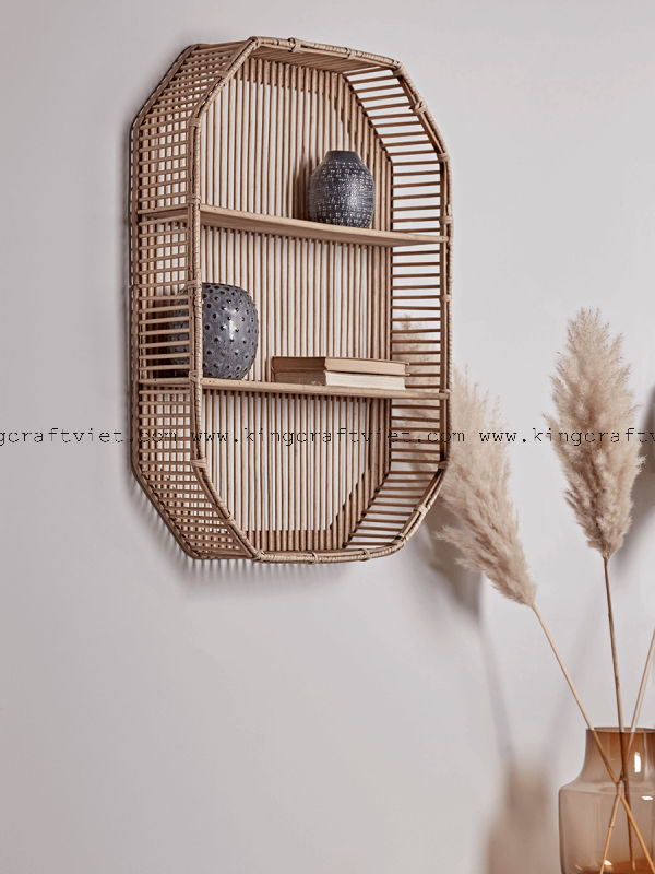 Handmade Double-Tier Wall Mounted Wicker Storage Rack Tall Flat Rattan Hanging Organizer Home Decor Crafted Vietnamese Welcome