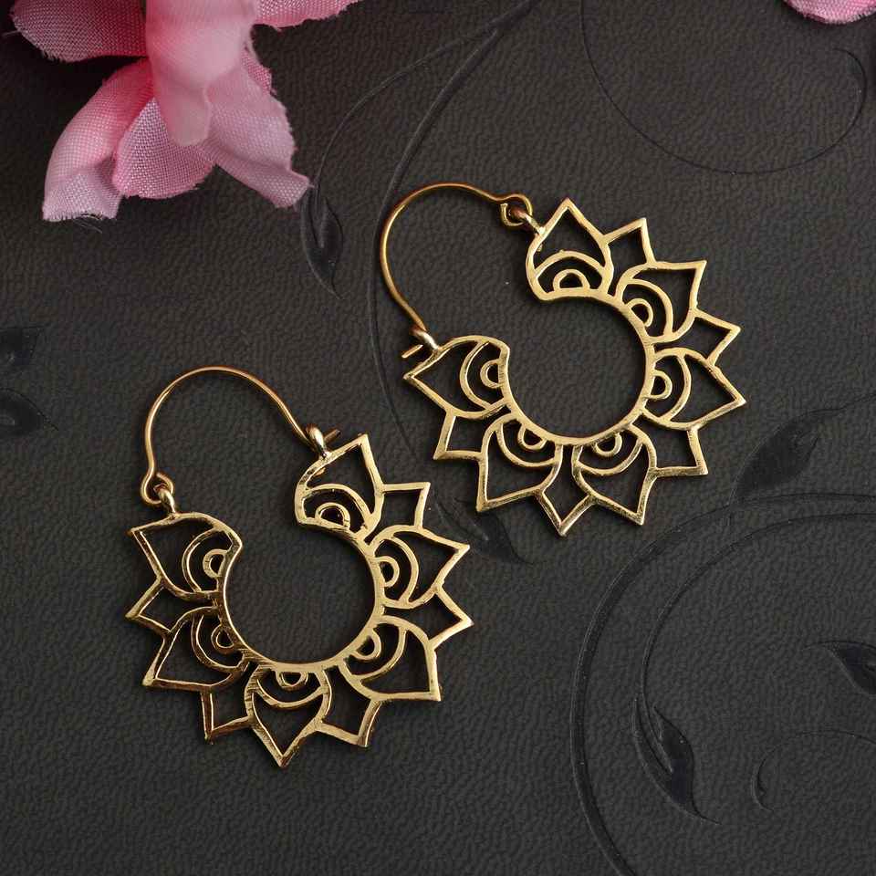 Hot Trendy 18k Gold Plated and Sterling Silver Plated Mandala Flower Hoop Earring for Women Fashion Jewelry at Wholesale Price