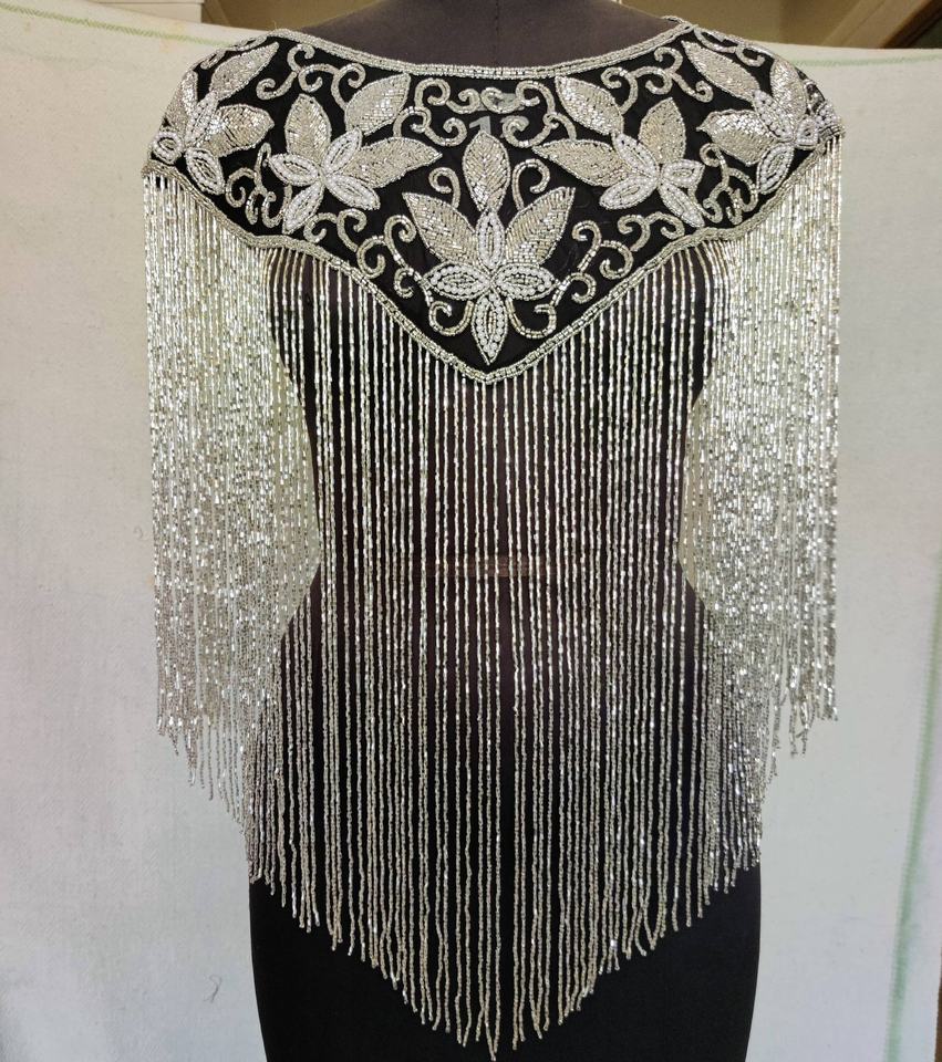 Beautiful Silver hand embroidery with beaded shiny fringes