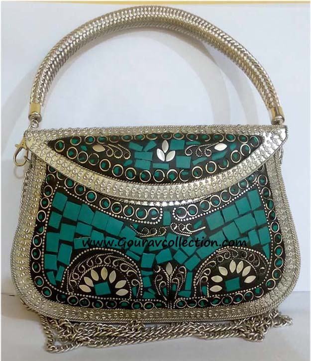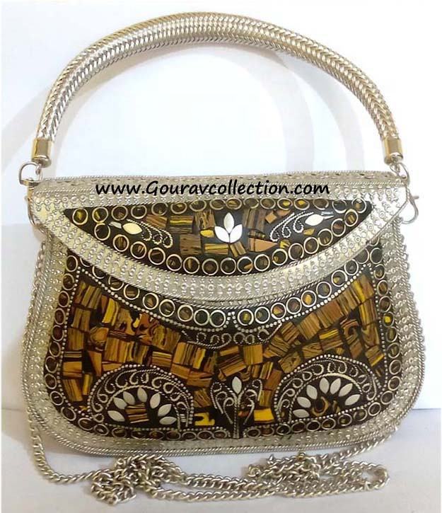 Hot Trendy Women's Fashion Metal Clutch Cross Body Party Bag With Handle Best Price in India GC-BG-480-G