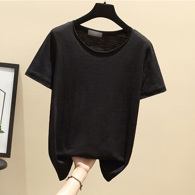 Hot Tshirt Cotton Linen Shirts Woman New Loose T-shirt Women's Round Neck Tee America Tees Students Tops Europe Jersey Long