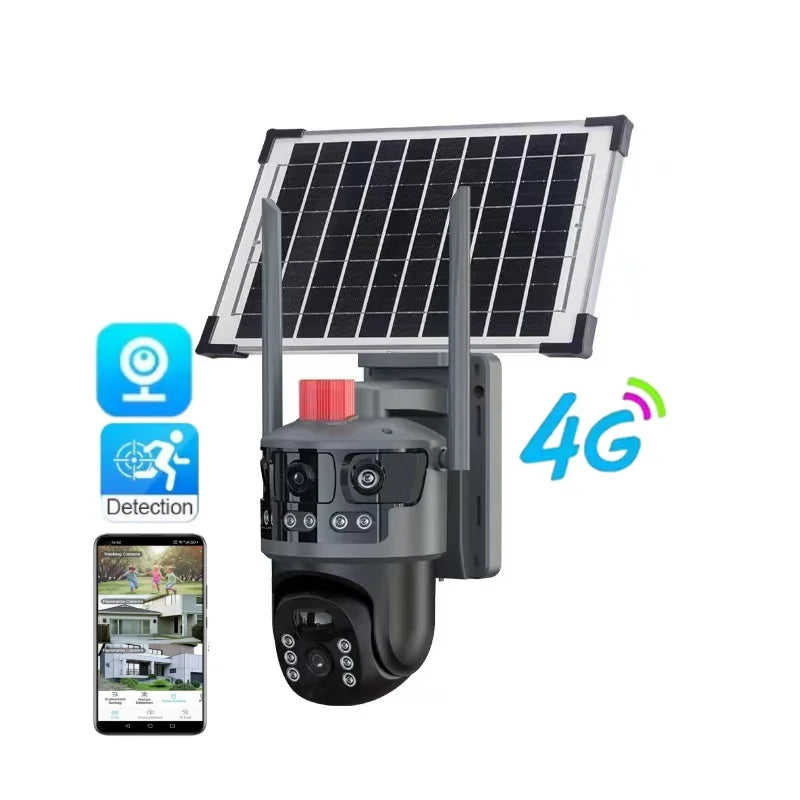 Hot V380 4G SIM Camera Three Lens Tracking with Dual Light Source PTZ 4G Solar CCTV Security Camera