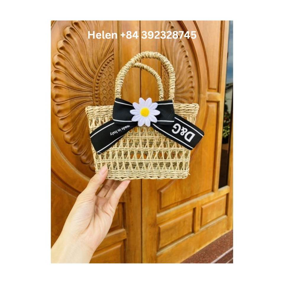 Hot Vintage Water-Hyacinth Green Leaves Women's Handbag Fashionable Beach Lady Bag Top Sale in Vietnam Low Price
