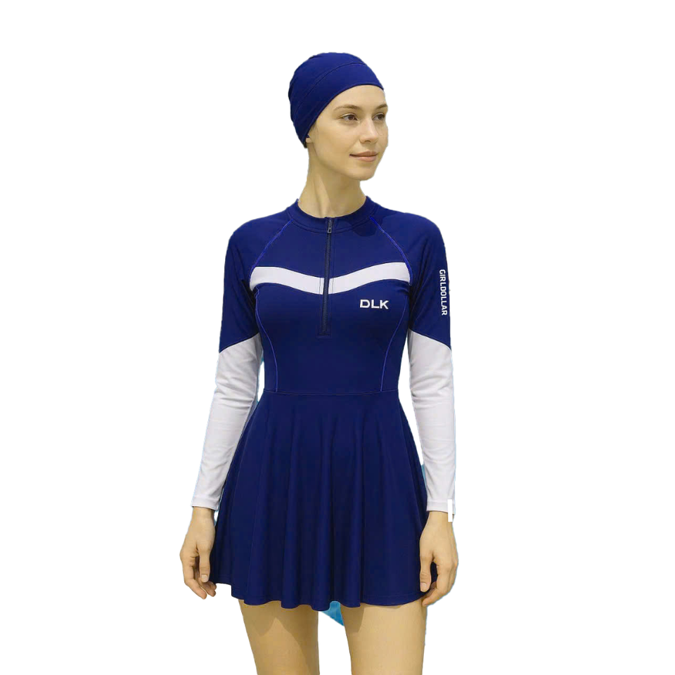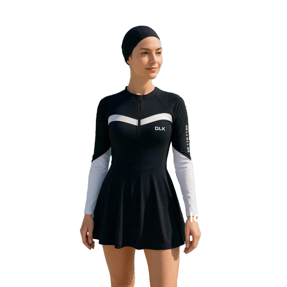 Hot Women's Waterproof 4-Way Stretch Nylon-Spandex One-Piece Swimdress Quick Dry Solid Pattern Beachwear Bikini Skirt