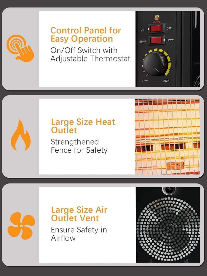 Adjustable Thermostat, Lighting, Tip-Over Protection