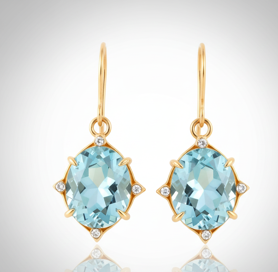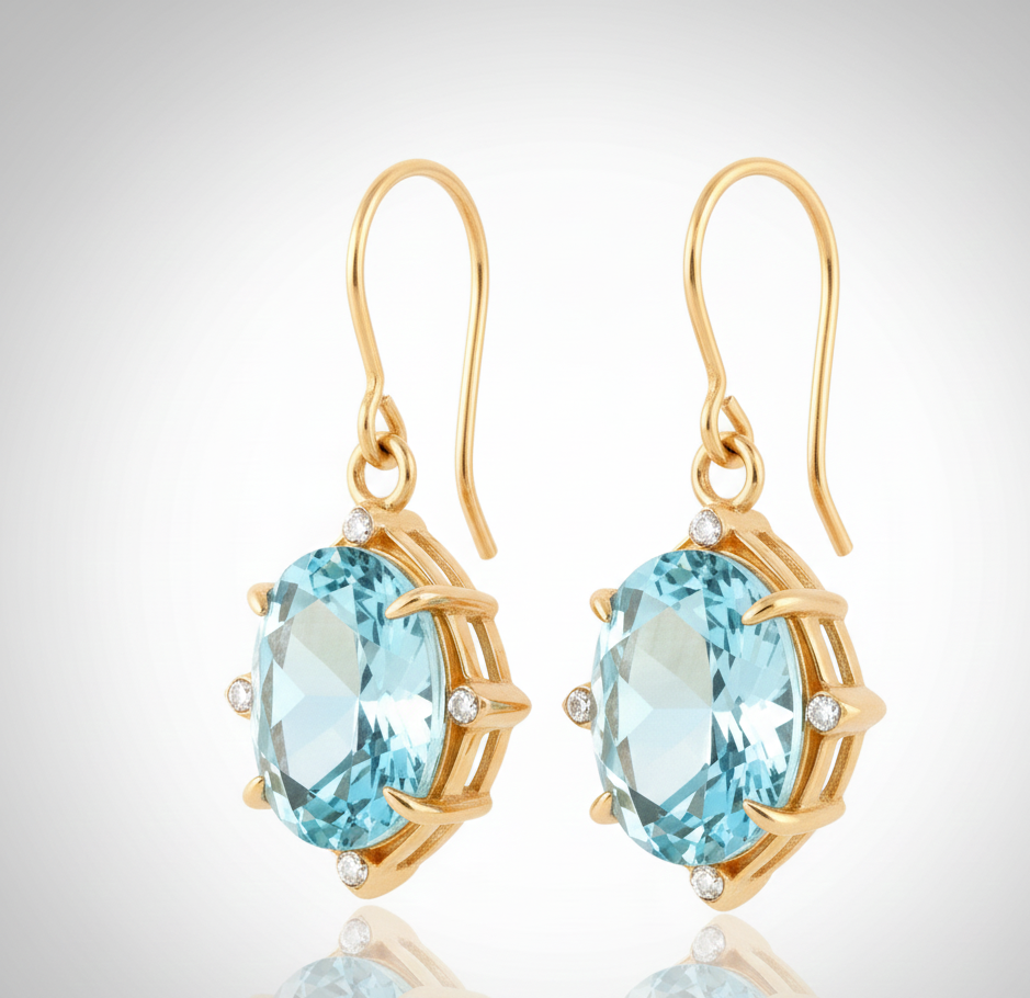 Blue Topaz 10*14mm CZ Earrings for Women 925 Sterling Silver 18K Gold Plated Dangle Gemstone Jewelry Gift