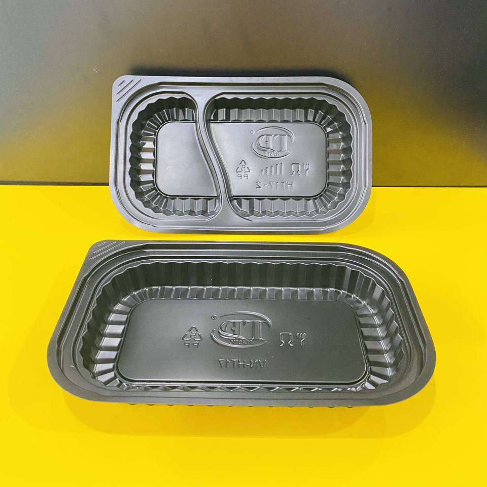Hot promotion 2025 Factory cheap price 2 compartments disposable Plastic food container with lid black color takeaway lunch box