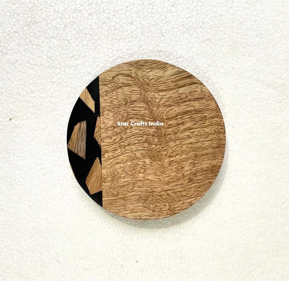 Hot Sale Coasters Wood Resin Mats Pads Round Home Hotel Natural Round Epoxy Resin Acacia Kitchen Accessories