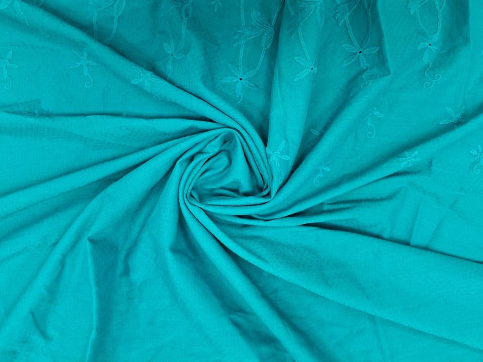 Peacock Blue/Firozee Cotton Embroidered Fabric