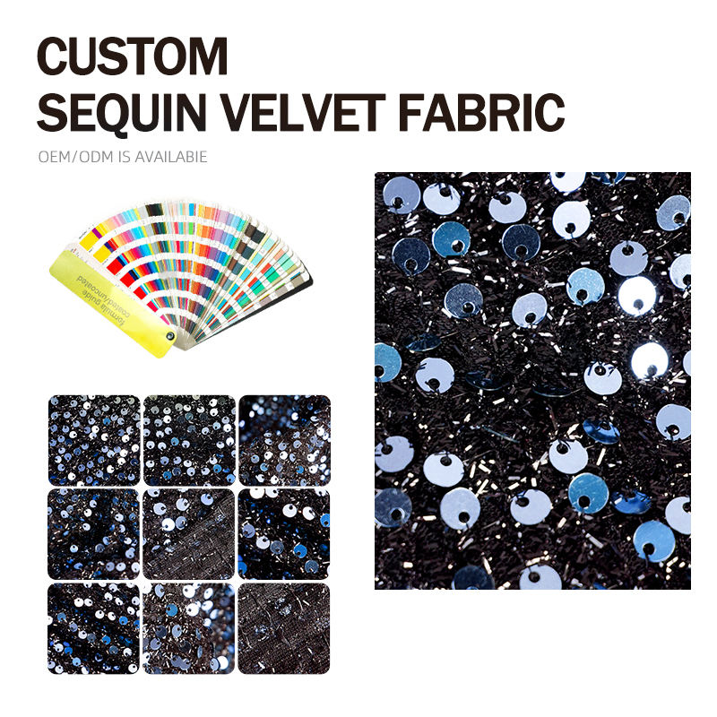 Hot Sale Custom Color Shining Upholstery Navy Polyester Sequin Velvet Fabric for Home Textiles