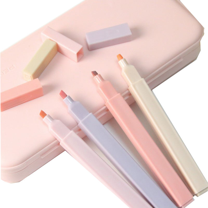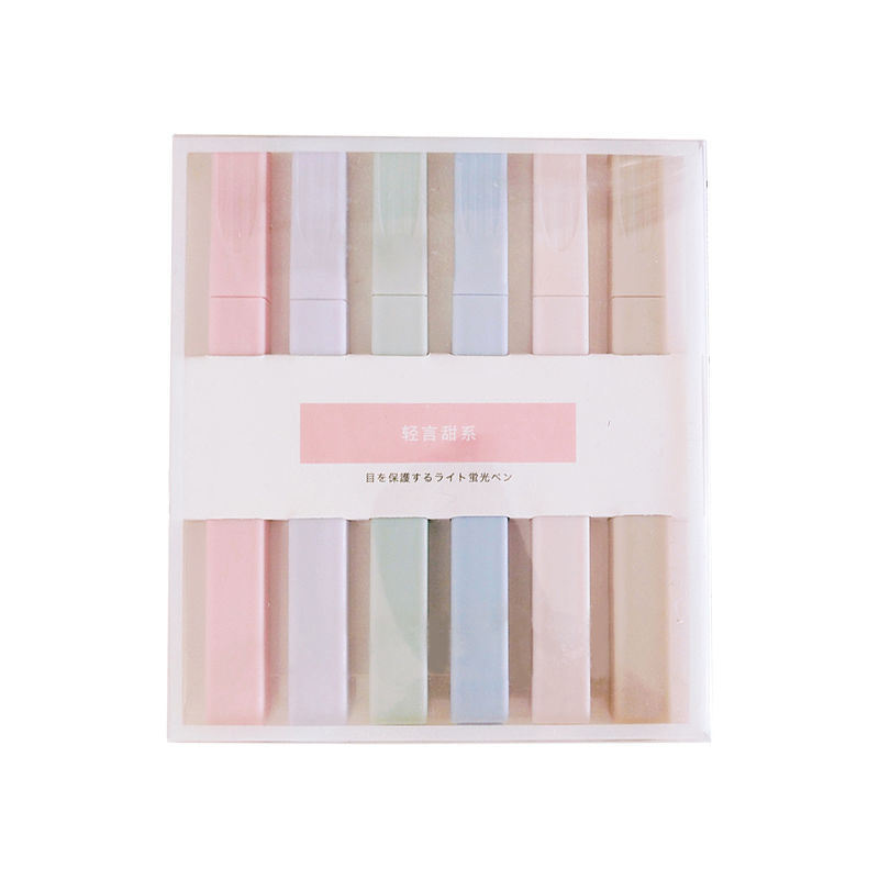 Hot Sale Custom logo Pastel Highlighter Pen Fluorescent Ink 6 Colors square Highlighter Marker Sets for Promotion Gifts