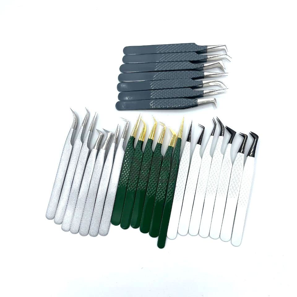 Hot sale eyelash tweezers set tweezers for eyelash extension stainless steel eyelash extension tweezers Fiber tip