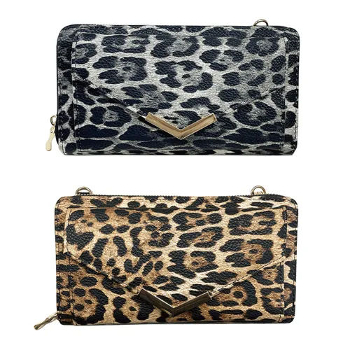 Hot sale leopard pattern ladies wallet PU leather folding short wallet ladies holding card holder daily necessities