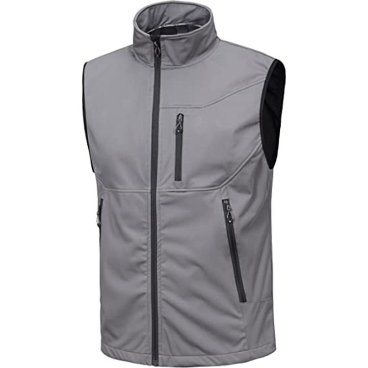 Hot sale mens softshell utility vest sleeveless lightweight waterproof windproof fleece lined outdoor jacket for camping hunting