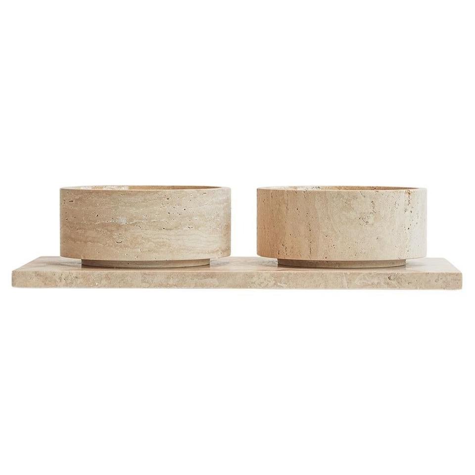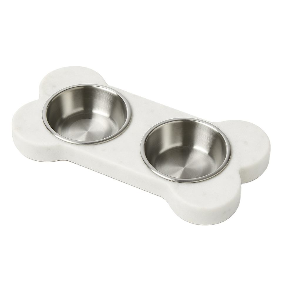Hot sale natural white marble dog feeder double pet bowl luxury stone dog feed supply wholesale trending design seller choice