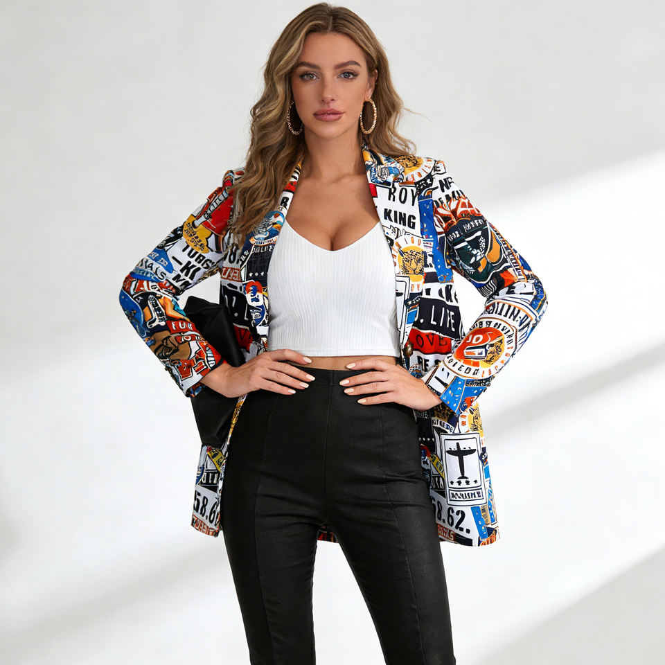Hot sale on Temu Trendy Womens Graffiti Print Blazer Loose Fit Open Front Lapel Jacket Lightweight Casual Cardigan for Street