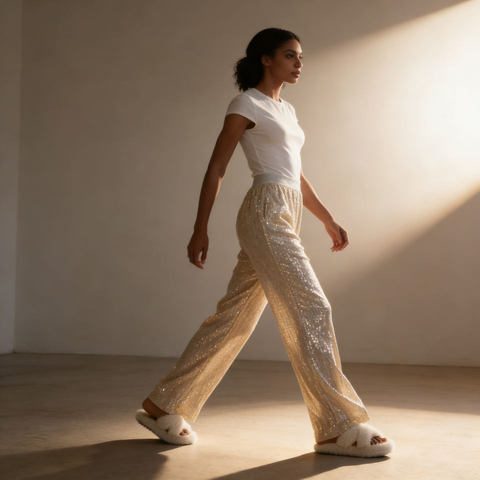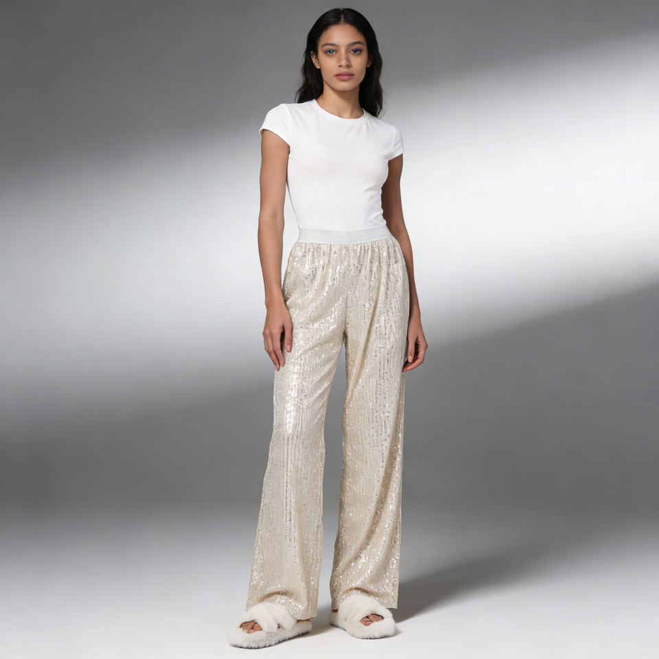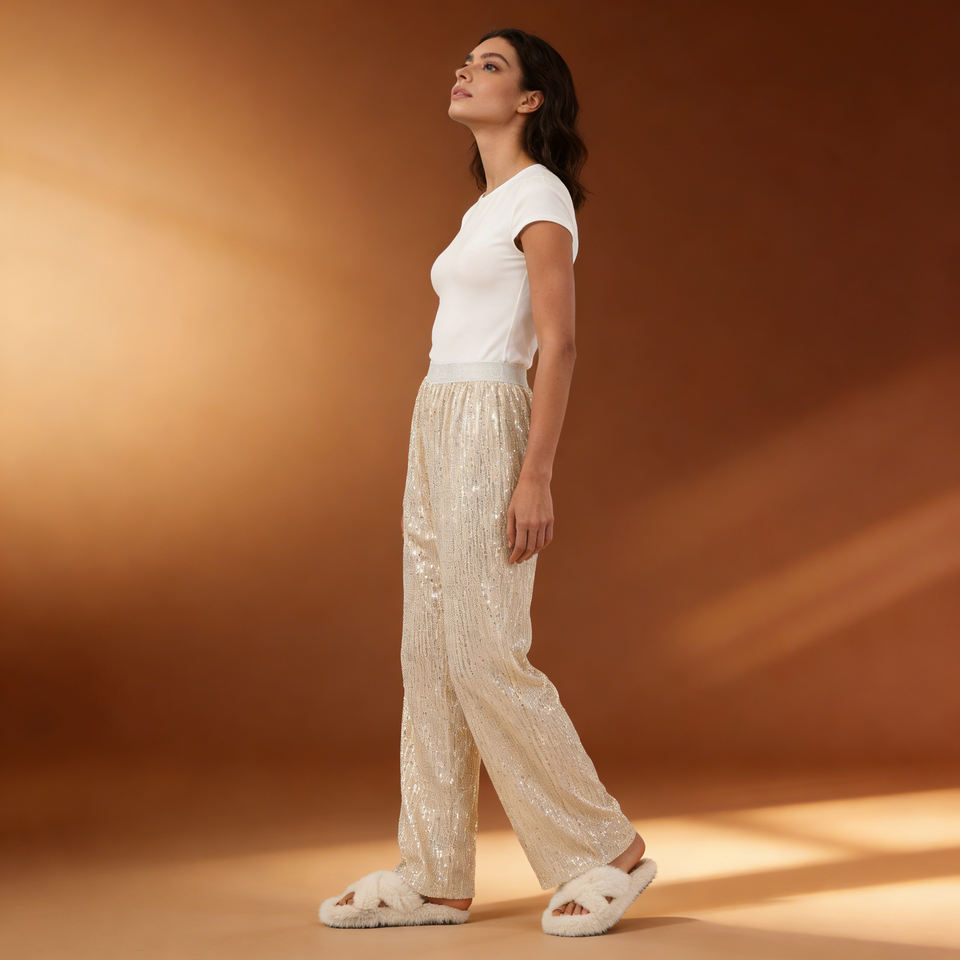 Hot sale on Temu Womens High Waist Sequin Trousers Loose Straight Leg Pants Sparkly Bottoms for Party Night Out