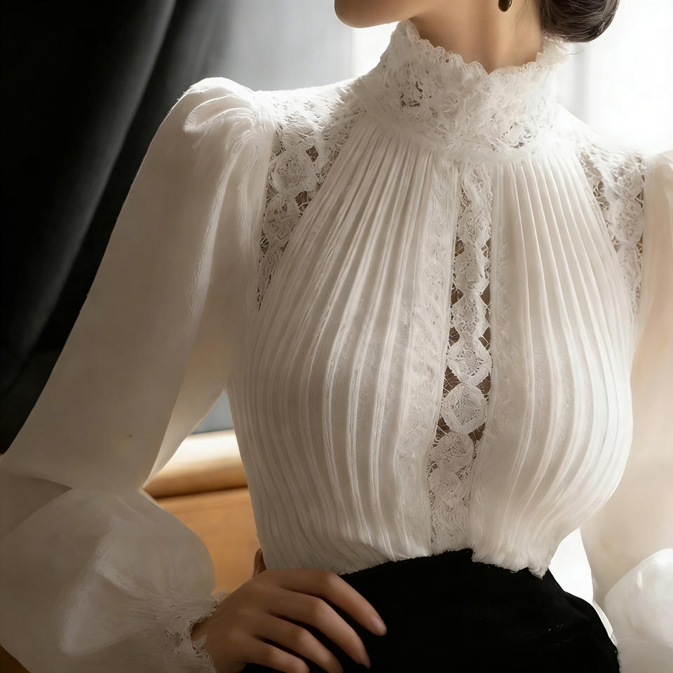 Hot sale on Temu ladies white high neck pleated long sleeve blouse professional office top chic button decor casual daily wear