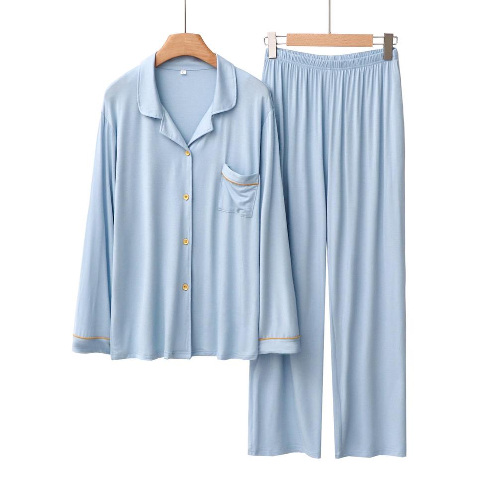 Hot sale summer custom logo long sleeves turn down collar Wholesale fashionable style causal women's set pajama Womens Sleepwear
