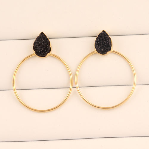 Hot sale texture design big circle natural black sugar druzy hoop earring gold/silver plated earring latest fashion hoop earring