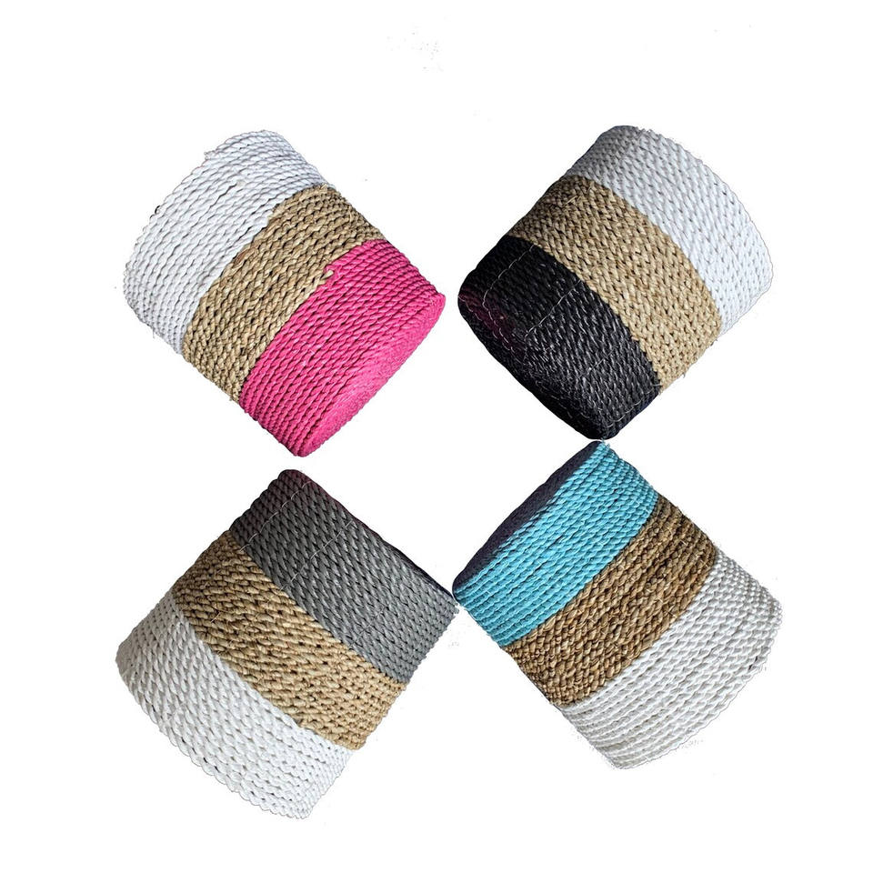 Hot Sales Set of 3 Handmade Seagrass Storage Baskets From Vietnam Colorful Bottom Beautifully Crafted