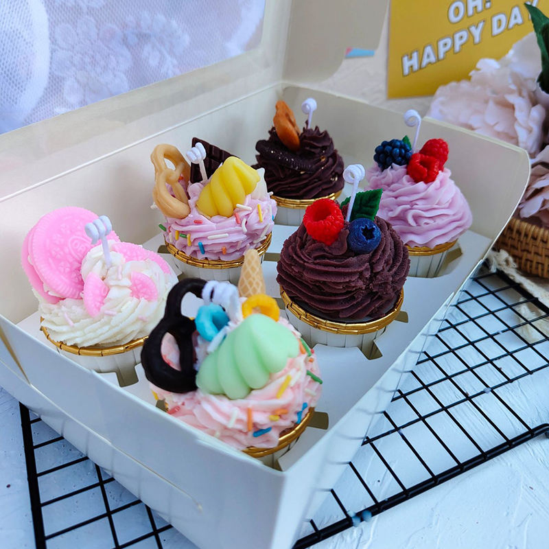 Hot sales sweet cup cake shaped candle novelty soy wax scented candle custom logo cute home decor for party holiday gifts xmas