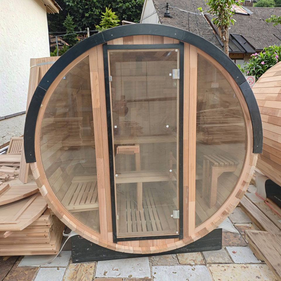 Hot selling 2- person outdoor traditional steam red cedar solid wood steam large barrel sauna rooms with 6KW electric heater