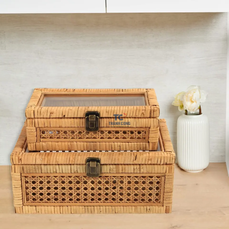 Product name:natural acacia wood a rattan cane baskets storage basket