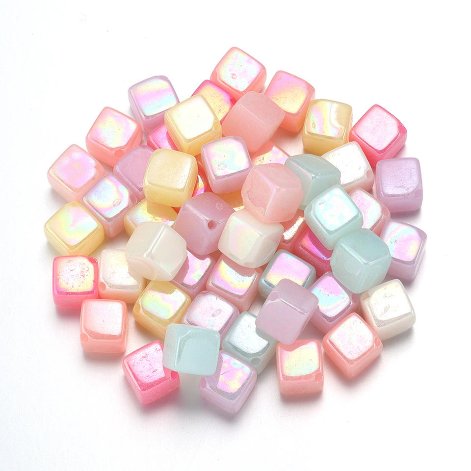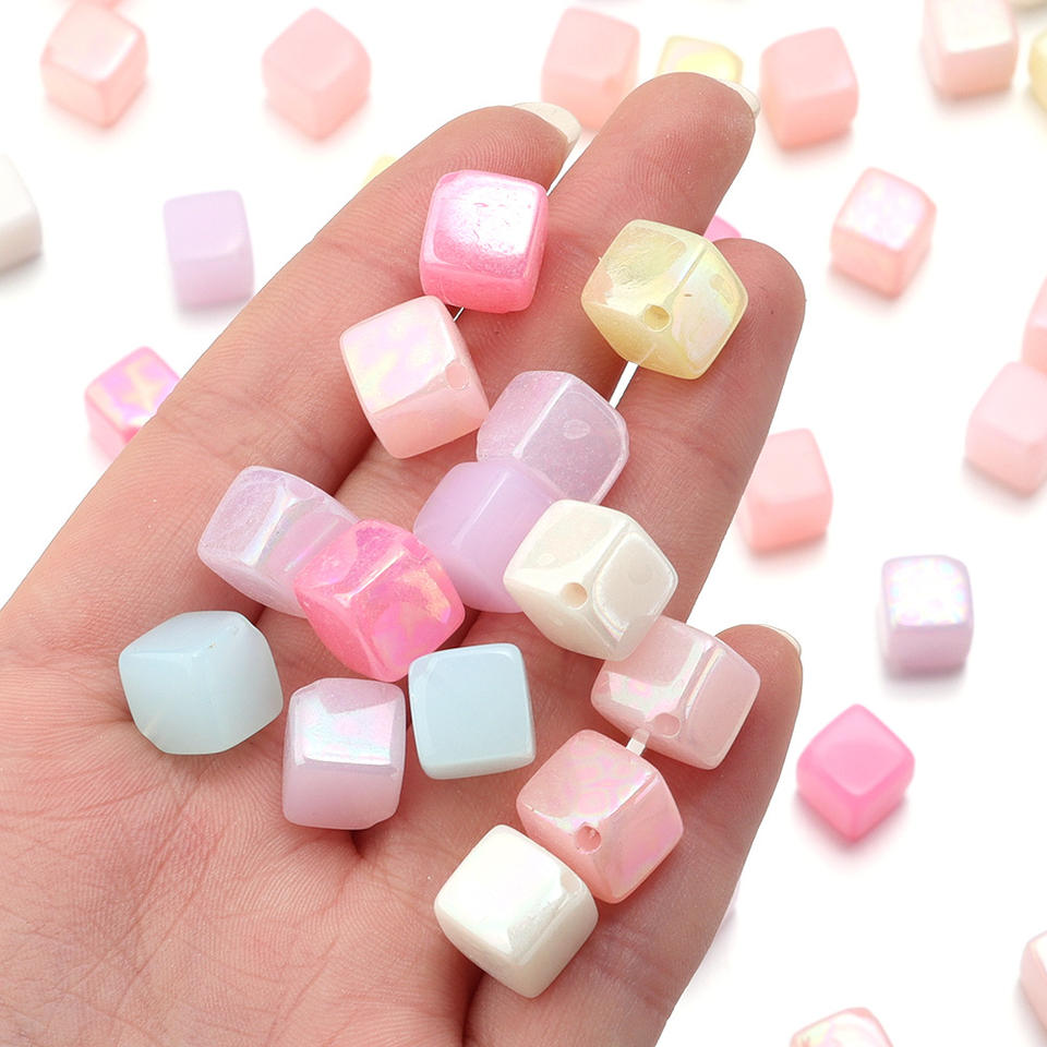 Hot-selling Acrylic Color Electroplating Square Beads for DIY Handmade Materials Bracelets Mobile Phone Chains Accessories