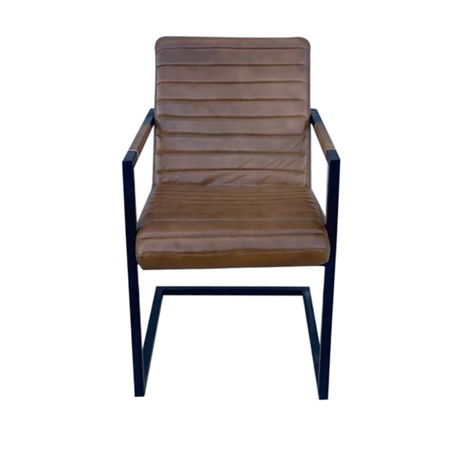 Industrial European Brown Genuine Leather Dining Chair with Armrest | Handmade Iron Legs | School Restaurant & Home Use