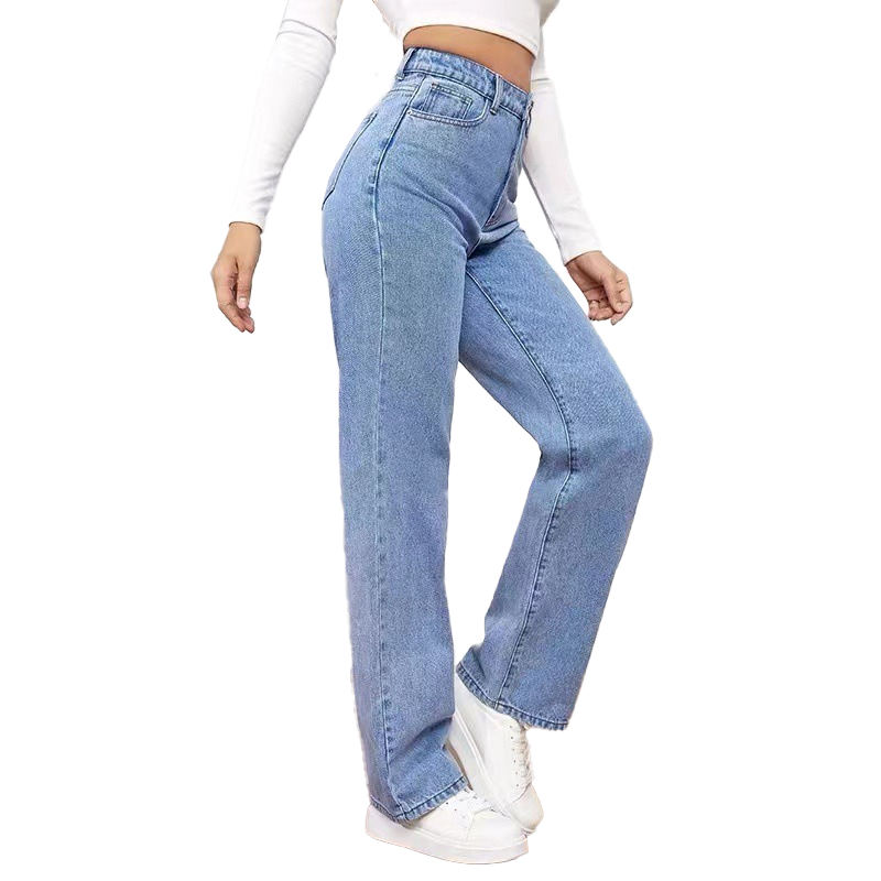 Hot-selling Women Casual Stretch Washed Denim Fashionable Straight Pants Jeans Women's High Waist Jeans Pants