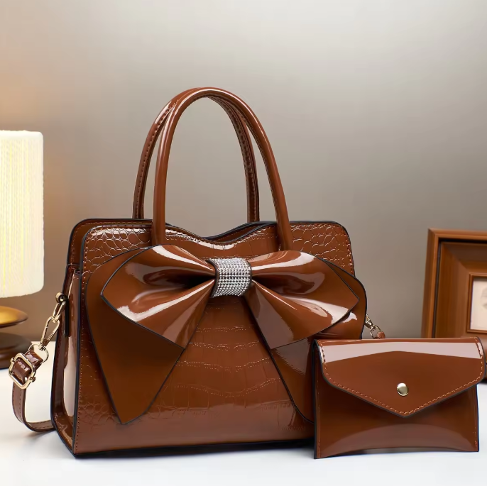 Hot selling fashionable women's bag, portable PU leather handbag, large wallet, bow design tote bag