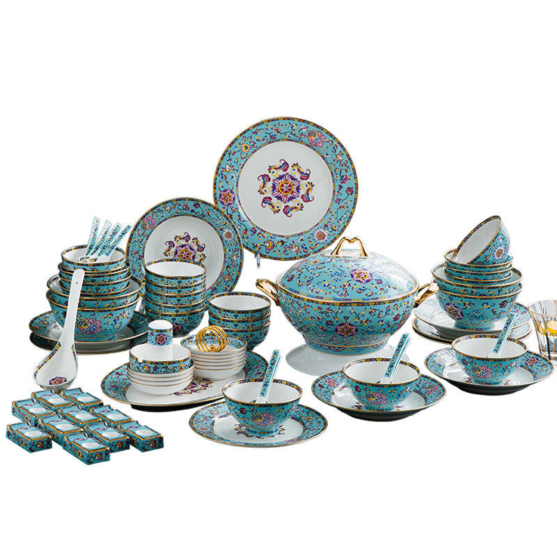 Wholesale New Model Ceramic Soup Plate with Blue Green Floral Design Customizable Pattern for Home Decoration Dining for Hotels