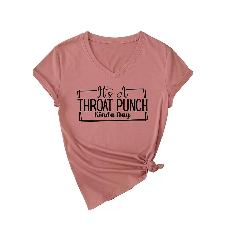 Hot-selling high-quality T-shirt custom new V-neck short-sleeved fashion printed loose T-shirt women